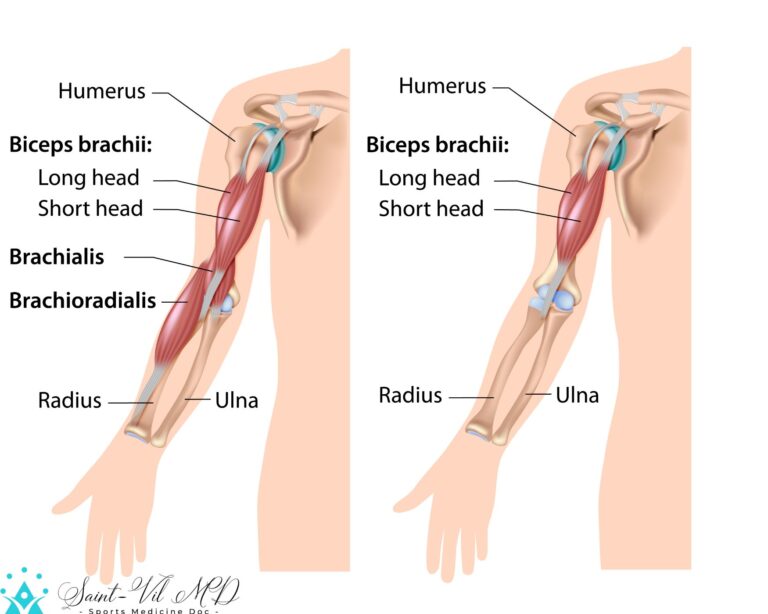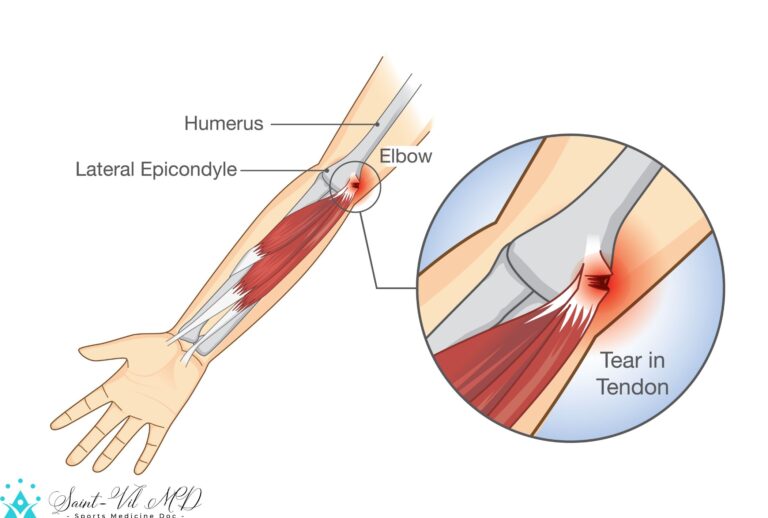 Elbow Muscle injury and tear in tendon at elbow area. Illustration about medical and health. Wisler Saint-Vil, MDAugust 5, 2022