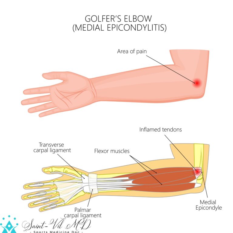 Elbow Vector illustration of Medial Epicondylitis or golfer’s elbow. Used: transparency, blend mode, gradient. Wisler Saint-Vil, MDAugust 7, 2022