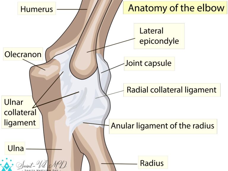 Elbow Anatomical design. posterior and radial collateral ligament of the elbow joint. Showing the main parts that made the elbow joint for basic medical education Also for clinics Wisler Saint-Vil, MDAugust 5, 2022