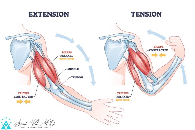 Hand & Wrist Contracting and relaxing of arms biceps and triceps muscles outline diagram. Labeled educational scheme with anatomical contracted and relaxed muscular system structure description vector illustration Wisler Saint-Vil, MDAugust 2, 2022
