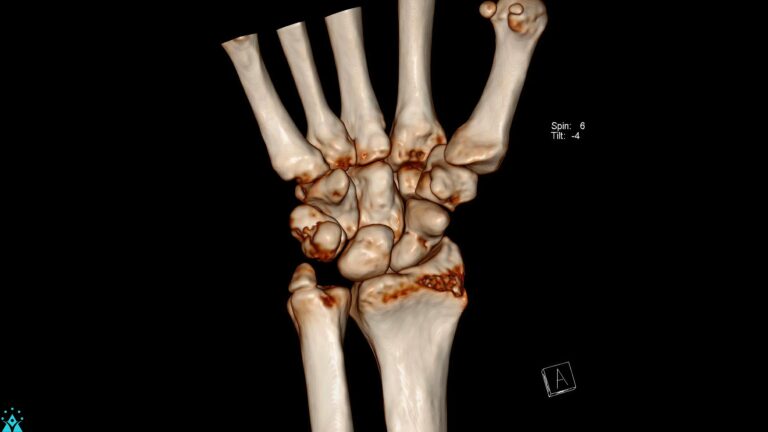 Hand & Wrist Computed Tomography Volume Rendering examination of the wrist joint ( CT VR wrist) showing fracture of the scaphoid bone and ulnar styloid process. 3D rendering Wisler Saint-Vil, MDAugust 9, 2022