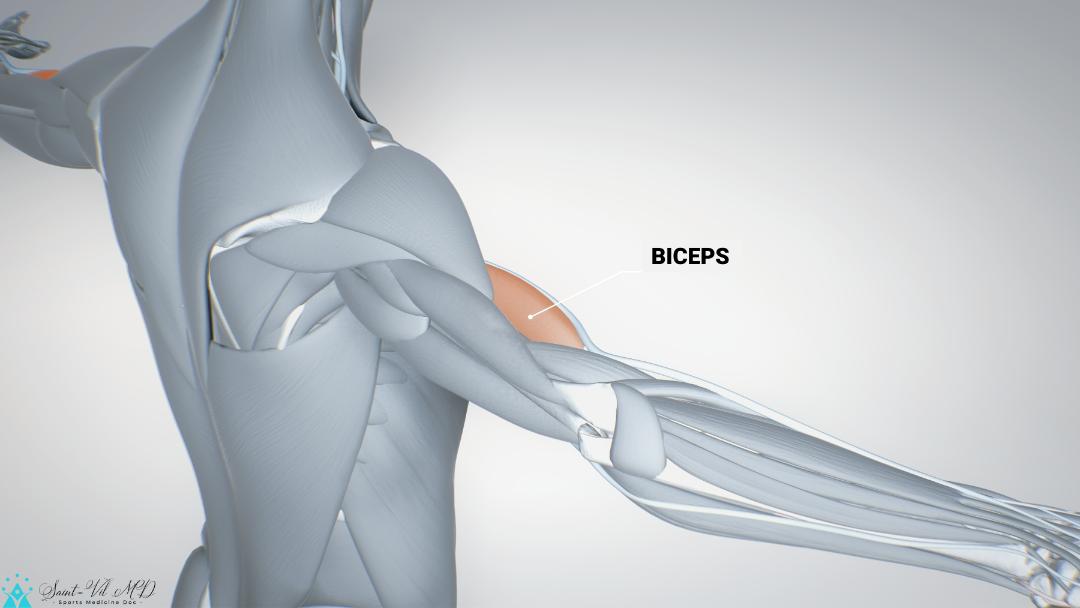 Biceps, arm muscles, human muscular system, 3D human anatomy, 3D render