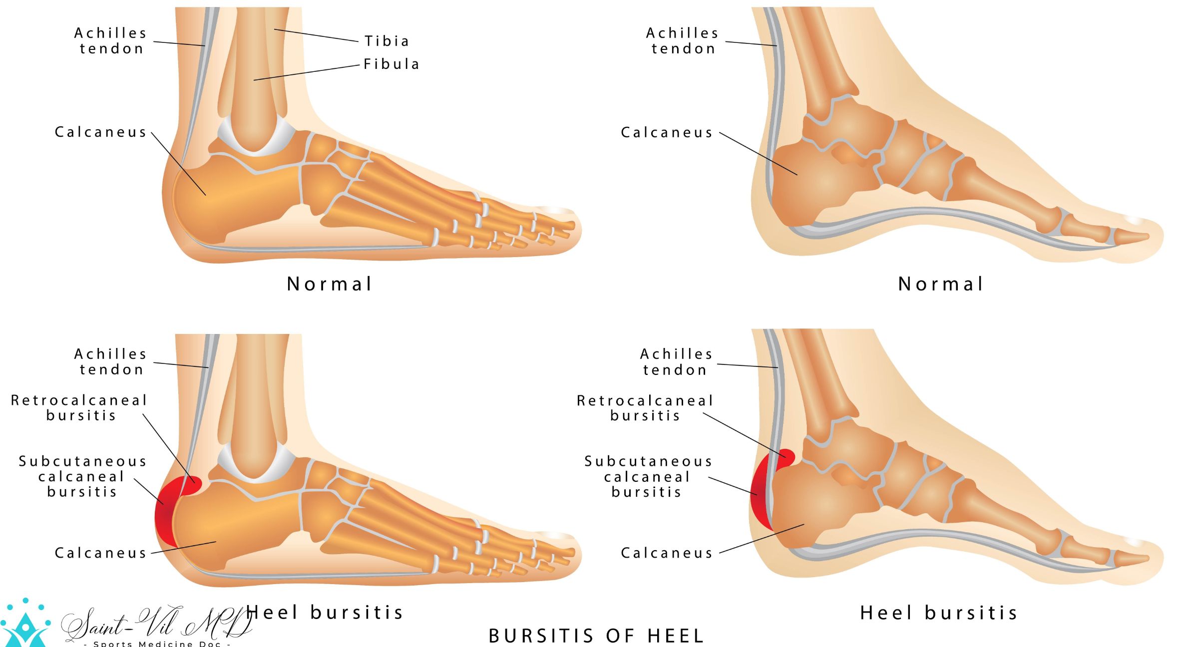 Heel Bursitis. Foot with normal heel and the foot with Haglund’s deformity and bursitisWisler Saint-Vil, MDAugust 5, 2022Foot & Ankle Wisler Saint-Vil, MD Sports Medicine Physician Marietta Memorial Sports Medicine department medical director Articles: 707 Previous Image Library Human arm musculature. Anatomy of human arm. Next Image Library 3D render of a female figure holding hip in pain with skeleton highlighted