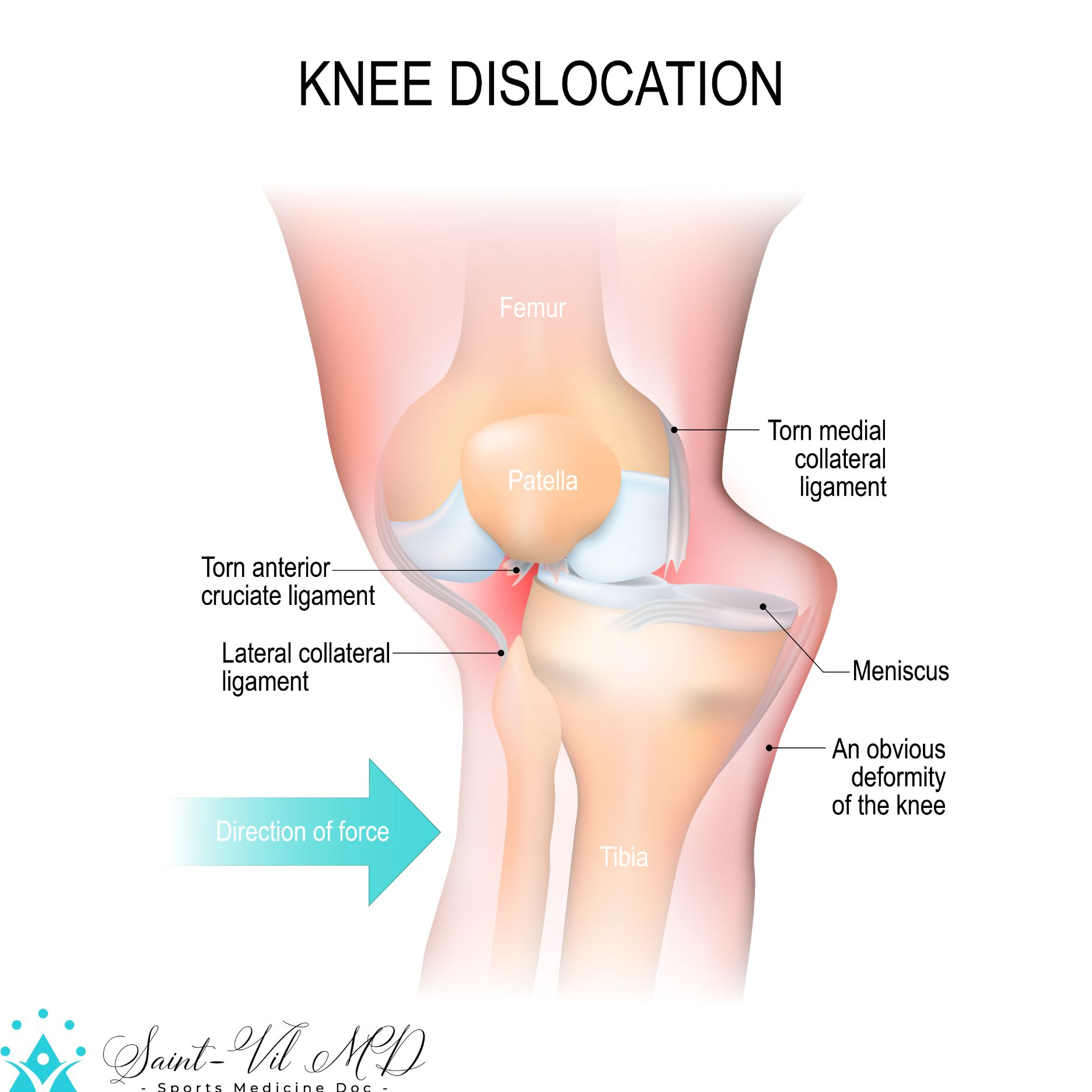 Knee dislocation. Lateral trauma to the knee, torn collateral ligaments, cruciate ligament injury and meniscus injury. An obvious deformity of the knee. Human anatomyWisler Saint-Vil, MDAugust 7, 2022Knee & Lower Leg Wisler Saint-Vil, MD Sports Medicine Physician Marietta Memorial Sports Medicine department medical director Articles: 707 Previous Image Library Patellar dislocation. Normal position of kneecap and Patella displaced. Anatomy of the Knee Next Image Library A mallet finger a deformity of the little finger caused when the tendon that straightens your finger (the extensor tendon) is damaged. sometimes called chamber maids finger.
