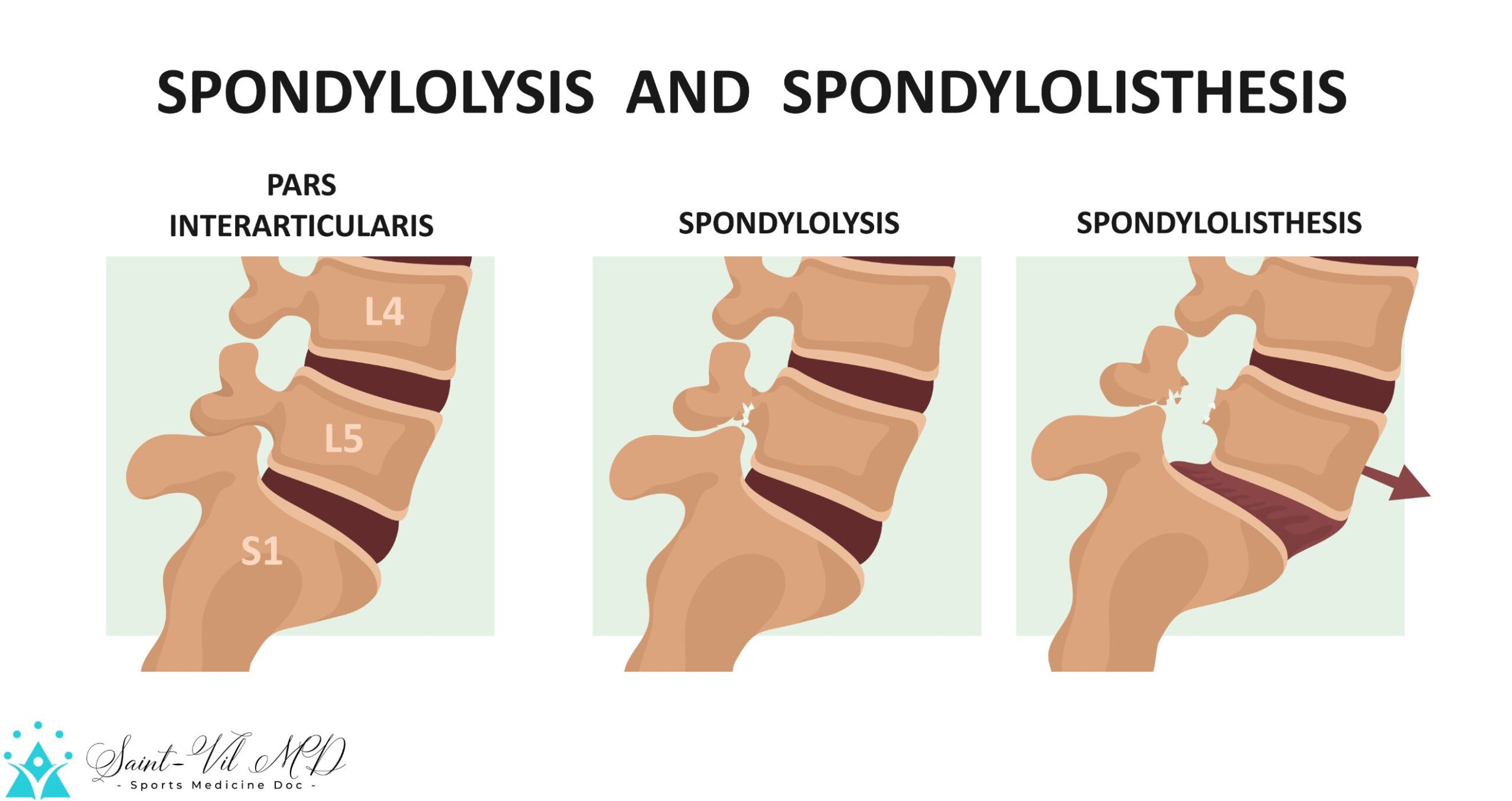 Spondylolysis and spondylolisthesis. Vertebra offsetWisler Saint-Vil, MDAugust 5, 2022Back Wisler Saint-Vil, MD Sports Medicine Physician Marietta Memorial Sports Medicine department medical director Articles: 707 Previous Image Library EPI Intratissue Percutaneous Electrolysis dry needling ultrasound ecography scan physiotherapy medical treatment. Next Image Library Plantar fasciitis. disorder of the connective tissue which supports the arch of the foot. vector diagram for medical, educational and scientific use