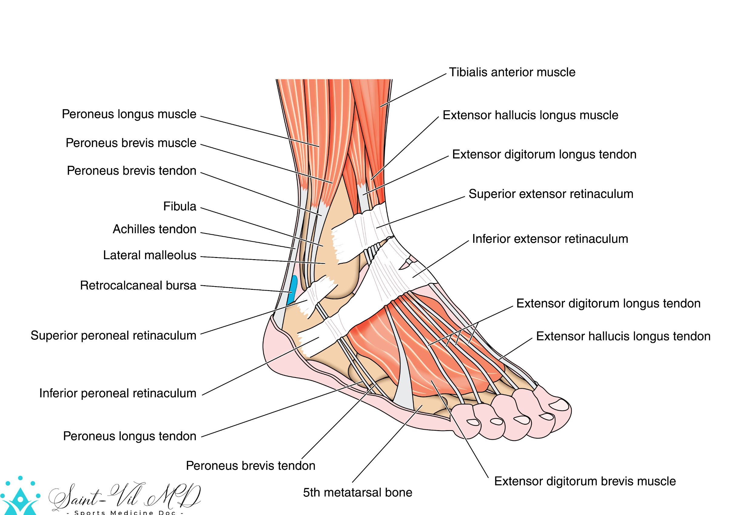 Tendons and muscles of the foot and ankle, including the bones, attachments and retinaculae. Created in Adobe Illustrator. Contains transparencies. EPS 10.Wisler Saint-Vil, MDAugust 7, 2022Foot & Ankle Wisler Saint-Vil, MD Sports Medicine Physician Marietta Memorial Sports Medicine department medical director Articles: 707 Previous Image Library Osteoarthritis and normal knee joint colorful design, healthy half of the joint on a blue background and unhealthy on a red. Next Image Library Leg most injured regoins in sport – ankle,hip,knee